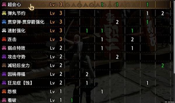 这套打弱点满会心,弩自带40,二级弱特30,狂龙症2级25触发可以说是极其的稳定,再来个一级看破正好满,直接可以带偷东西猫让你的刷刷之路更加的舒服。