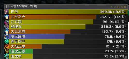 在138层以前移花接木治疗量都是比珠子治疗量高的。下图为149层死亡后的治疗量,所有的[火红烈焰]全是输出,没有用于治疗自己。
