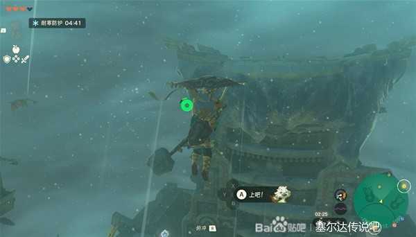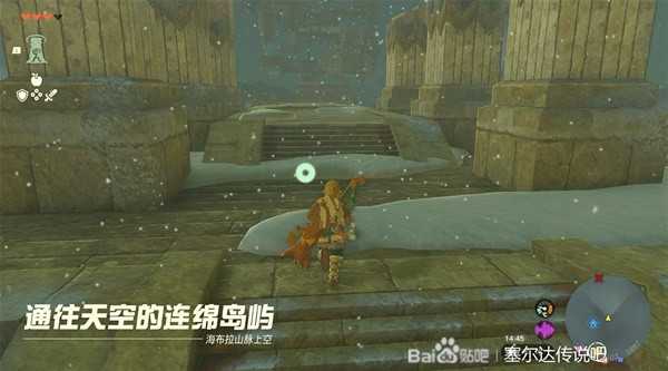 战斗结束以后需要前往浮空岛屿。这里需要慢慢一路从连绵岛屿一路往上爬,路有点远,不过也不算难走,好好利用吹风技能就行。路上还有神庙记得开了方便传送,并且上去以后需要二级防寒。