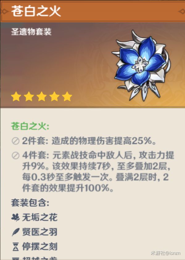 圣遗物推荐4苍白之火或者2苍白之火2和染血的骑士道。