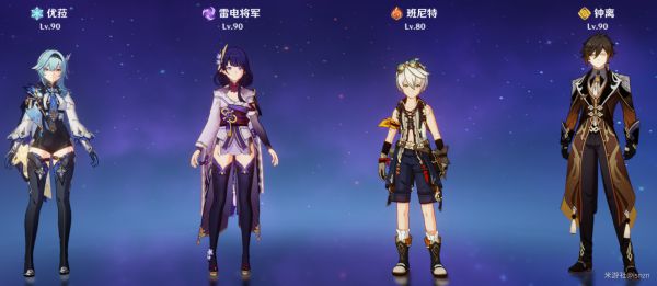 温迪开大进行聚怪切钟离开盾开大进行一波控制雷神接e切出优菈开短按e开大平a四下再接长按e。