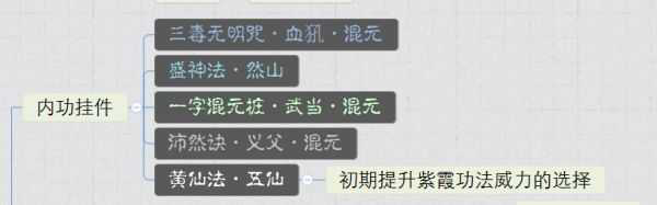 前面忘了说,这里提一下,建议本套路走【紫霞·纯阳】的内力修习套路,虽然后面我会提到一些挺配合的其他内力功法,但不能选用过多。不过要是愿意直接从小混元开始的话,另当别论,可以从推荐的功法内随意选择。