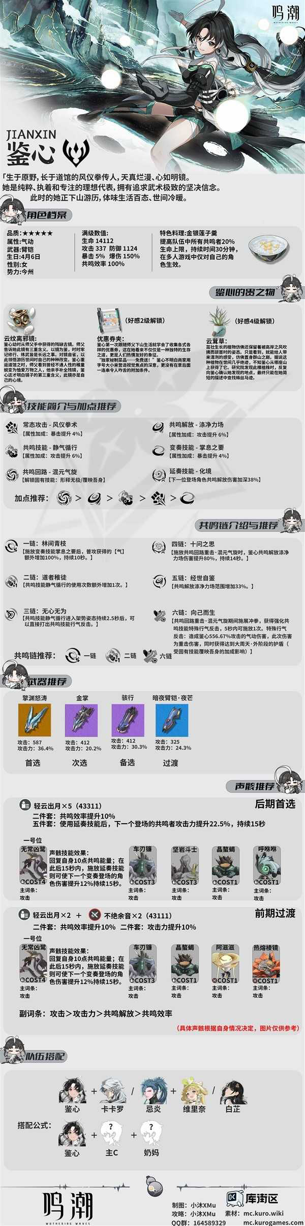 正文 《鸣潮》鉴心培养一图流 鉴心武器、声骸及队伍搭配推荐 闪亮小编 /2025-11-28 11:35:44 /1 浏览量 1128 《鸣潮》中的鉴心是一名气动属性角色,拥有很强的破盾能力,那么鉴心要怎么培养呢?请看下面由“小沐XMu”带来的《鸣潮》鉴心培养一图流,希望对大家有用。 参侔开阖,爰推本纪,汾脽出鼎,皇佑元始。 -- 展开阅读全文 --