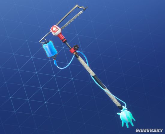 轻盈的锯子方便战场随时给伤员治疗,神奇的82年雪碧袋补充身体所需的快乐,底部莫名其妙的套子还有五个手指emmm可以同时五个人使用~就是这样一般神奇的医疗镐,简直就是堡垒之夜版要你命3000,得分6分。