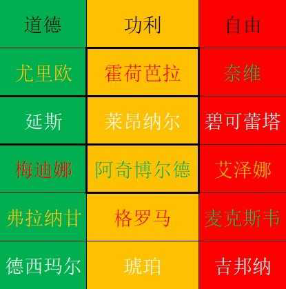 而更多的队友,则是跟据瑟雷诺亚的信念来加入队伍,当瑟雷诺亚的道德、功利、自由达到一定数值时,自然会有英雄们慕名而来。