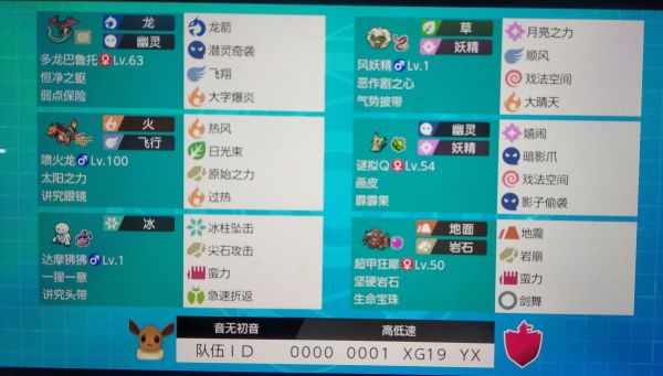 于是我选择换掉钢钟,将双向控速的重任完全交给风妖精,正巧队伍没有什么仙打击,便加入我非常喜欢的拥有AOE可以减少先读压力的仙子伊布。于是就被改成了下面这个版本↓