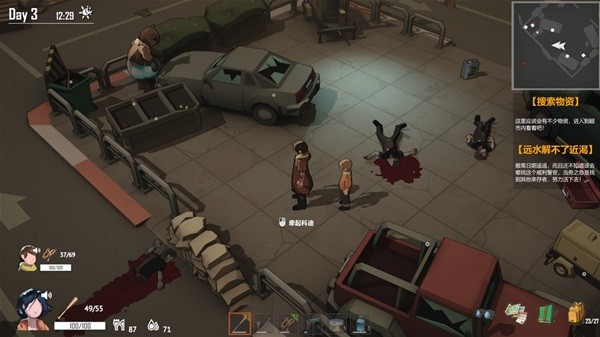 来自于来自物资的压力,本作中僵尸的压力其实非常小——本作制造的物品,从匕首球棒,再到各种工具都可以用作武器,然后大部分僵尸会被打出硬直,也就是说你只用不被围攻,基本一对一决对安全,万一吃了伤害,用绷带回血就没事,绷带用酒精+布条就可以做,酒精可以用头都,布条杀僵尸掉的衣服可以拆解,都是来源很容易的物资。