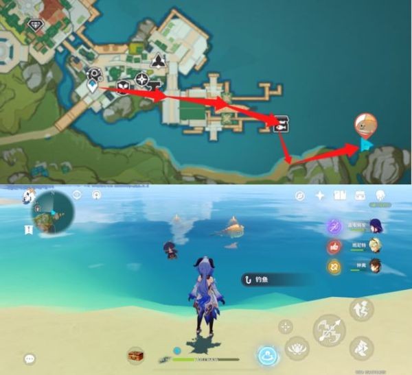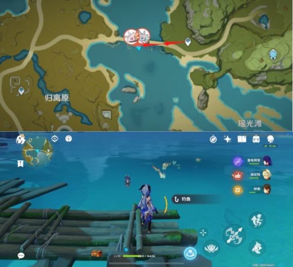 2)蒙德城钓鱼点有锖假龙,显长条类似现实中的带鱼,表皮颜色为青蓝色