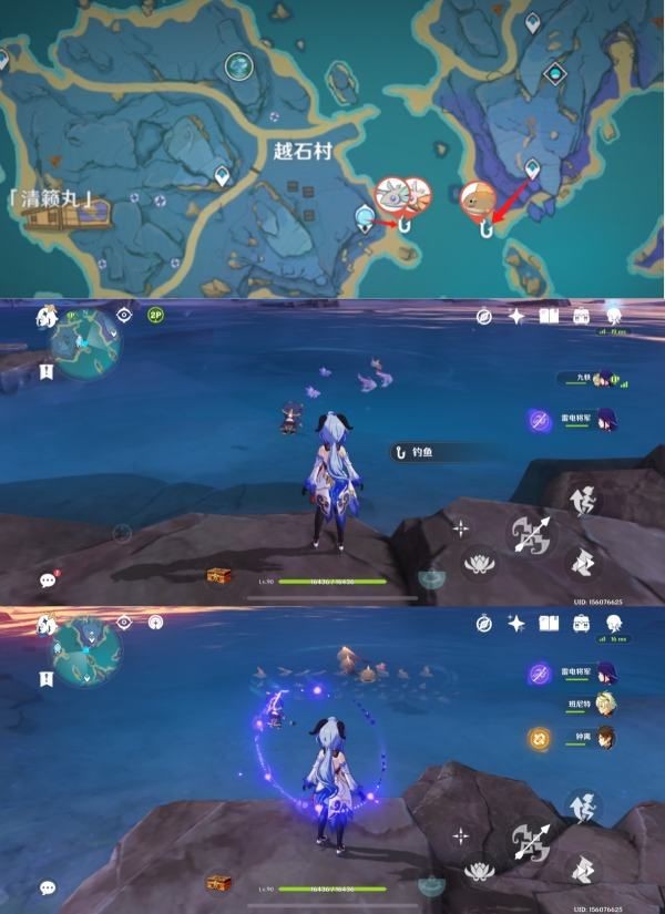 12)越石村附近有两个钓鱼点分别有炮鲀、金赤假龙和锖假龙,附近有怪小心拉到仇恨