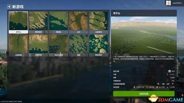 进入游戏前需要选择基础地形,新手建议选择默认的“双子山”,各项资源都比较平衡。