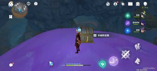 别急着走!!大蘑菇顶上还有一个华丽宝箱,可以按照下图中,先爬到旁边的树藤上,再飞到顶上(温迪万叶手脚并用…)