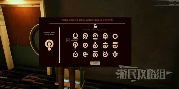 顺带一提,有一些需要双人合作开启的门需要两名玩家同时正确的图案,图案是固定的但出现的位置和顺序是随机的,玩家需要描述自己的图案给另一名玩家。图案如下图所示,有些玩家或社区可能会给这些图案取固定的名字,不知道也没有关系,但建议提前想好该如何描述,以方便另一名玩家快速找到对应的图案。