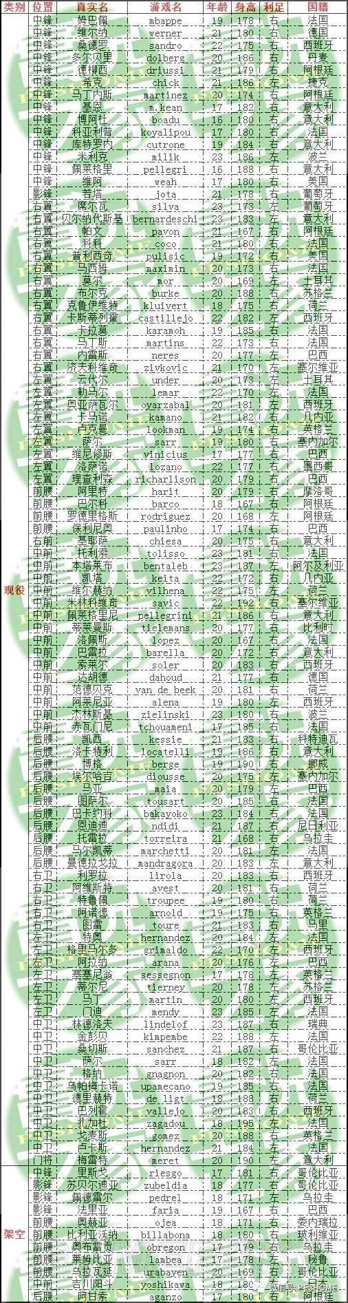 相比前3次的推荐名单,本次名单增加人数不多,仅为7名。分别为传奇巨星维阿的儿子蒂莫西·维阿、波尔多新秀赤瓦门尼、克罗门内后腰曼德拉戈拉、曼城左后卫门迪,以及3名架空妖人佩德雷尔、法里亚、乌拉瓦延。以下是详细名单。