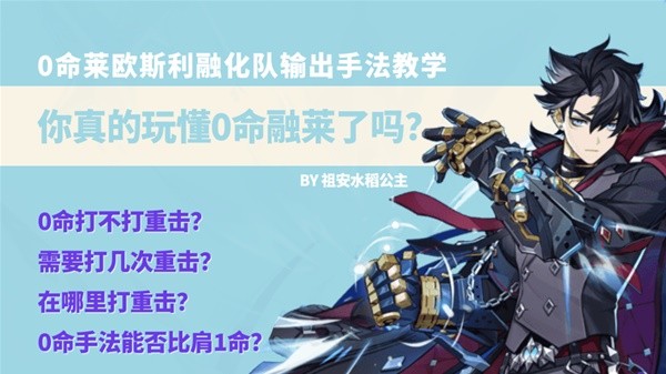《原神》4.1版本的新角色莱欧斯利相信很多玩家已经出了,那么要如何操作输出呢?下面请看由“祖安水稻公主”带来的《原神》0命莱欧斯利融化队输出手法分享,希望对大家有用。