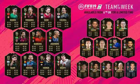 《FIFA19》每周会根据球员在现实比赛中(联赛、杯赛、国际比赛日)的表现评选出最佳阵容,并为这些球员制作黑卡(TOTW卡),这些球员卡抽取时限为一周,那么下面就为大家带来第7周最佳阵容,由默尔滕斯、维尔纳领衔,各位朋友来看看吧!