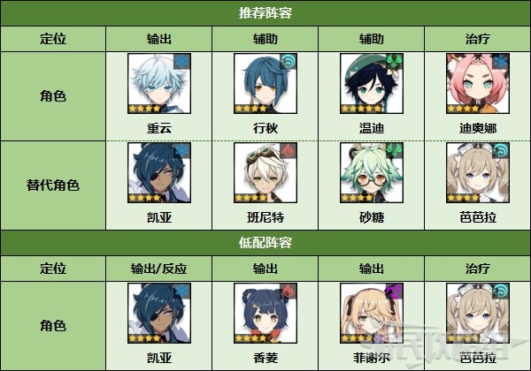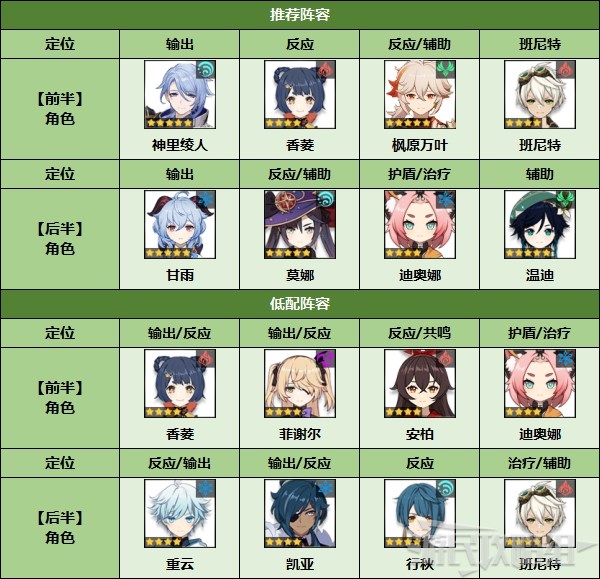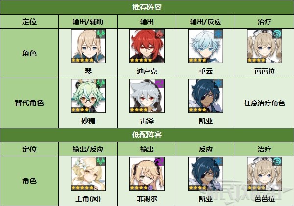 - 推荐元素:风、除岩以外其他元素