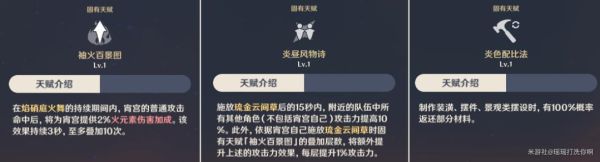 增加了开启元素战技的输出能力,还有加快了固有天赋【袖火百劲图】堆叠层数,如果运气好,一套普攻下来便叠满十层了,直接伤害最大化,