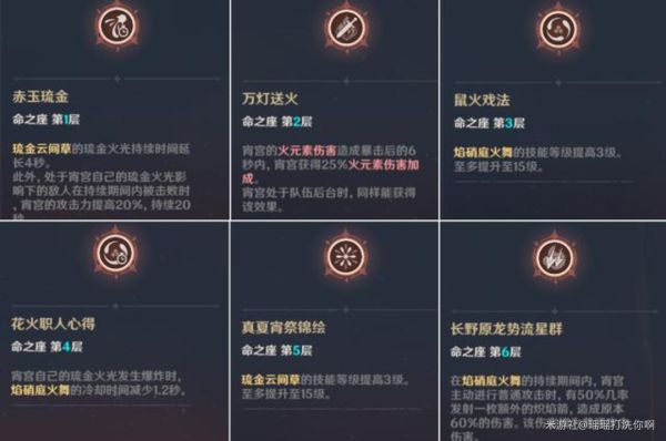 1命增加了大招伤害,提升20%攻击力,提升一般,3命和5命是常规命座,4命元素战技减少1.2秒CD,意义不大,