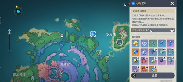 下图是「无相之水」的具体挑战地点,位于稻妻-海祇岛区域。