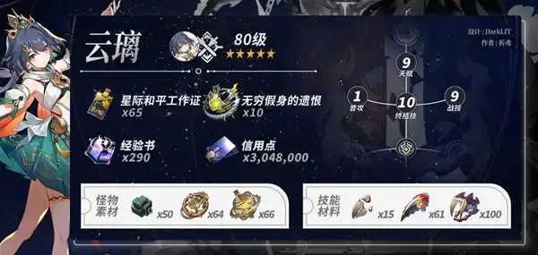 《崩坏星穹铁道》云璃将在2.4版本加入游戏,很多玩家想要提前准备她的培养素材,下面请看“祈鸢ya”带来的《崩坏星穹铁道》云璃培养材料一览,希望能够带来帮助。