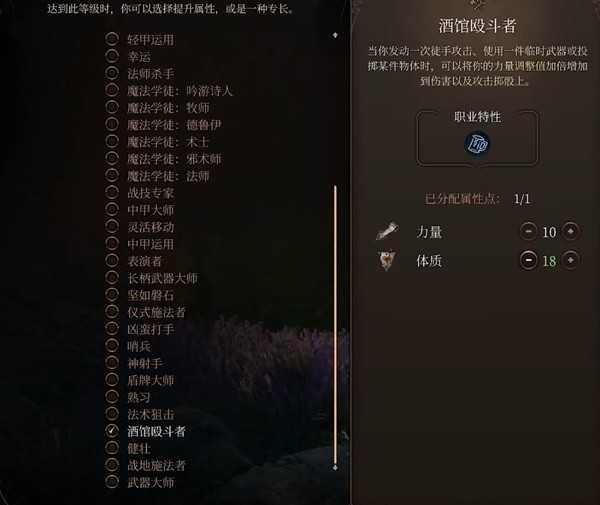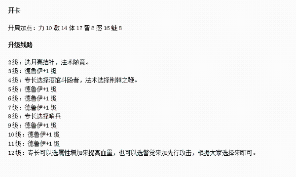 我们开局选择德鲁伊为我们的主职业,因为是变身流所以在多点些体质以保证扛得住,加点参考下图即可。