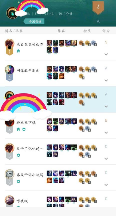 这版本为什么说虚空斗法/刺强,不说别的一局5个人以上玩虚空斗还能吃鸡率高就可以解释了(如果没人卡的话不敢想象),个人玩虚空斗法比较多,经常6级还是一个一星狐狸但是最后还能上分(和卢锡安一个概率的东西),然后死歌和虫子就不说了,有二星虫子和二星狐狸基本进前4没多大问题(除非装备很差),所以说虚空斗法目前版本第一没多大毛病,而且前中后期都很强。