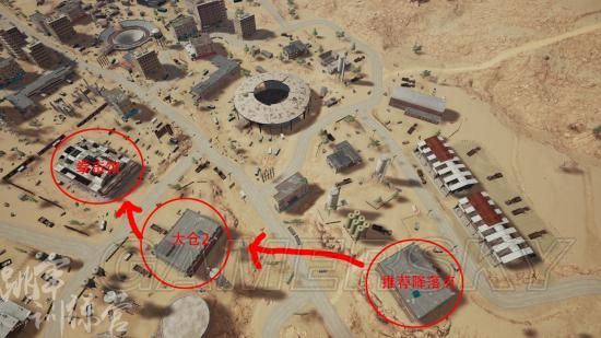 作为沙漠地图中面积最大的城镇,其内部的资源可谓丰富,眼红的玩家自然也不少,但是城内话环境较为复杂,作为刚枪玩家自然不愿意倒在LYB的枪口之下。所以在此处的推荐落点为这里。