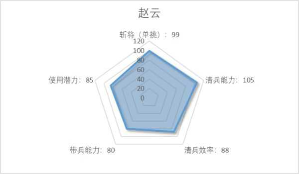 AOE技能效果在炎凤之上,同时【斗志豪壮】+100%重量以及50%到70%的闪避令赵云犁地也有较高的清兵效率。