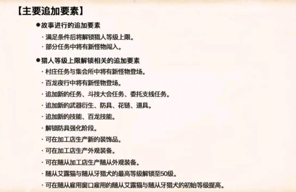 1:更新怪物:霞龙、钢龙、炎王龙、霸主角龙、霸主火龙等等(我感觉等等就是让再等等)