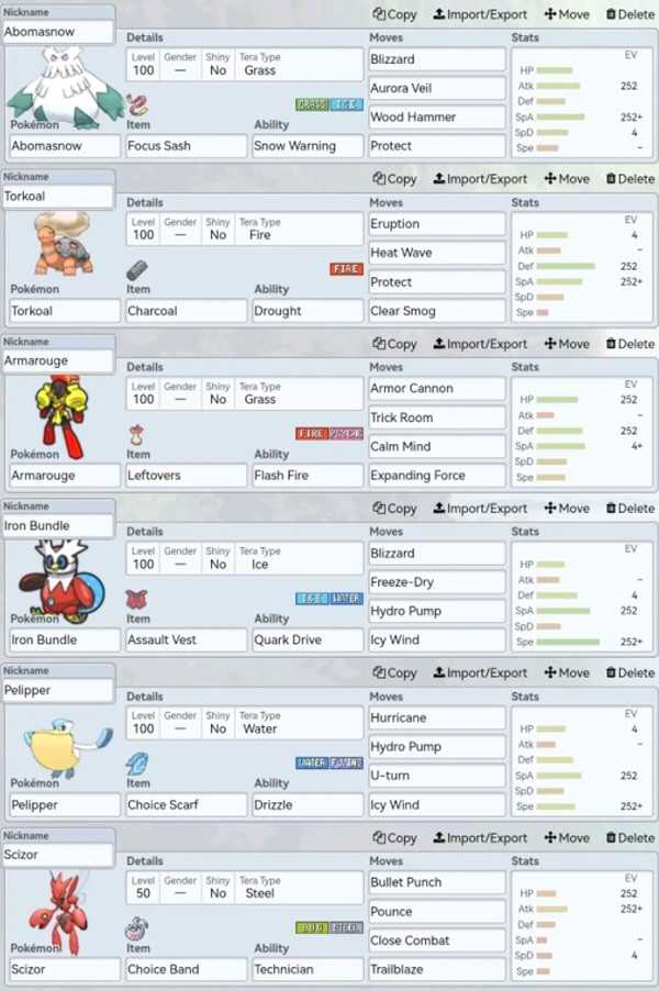 《宝可梦朱紫》中雪雨晴队在双打模式下非常强力,还不知道如何搭配该队伍的玩家请看下面“丶三刀一只猪”带来的《宝可梦朱紫》双打S2雪雨晴队伍分享,希望能够帮助大家。