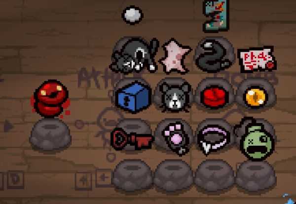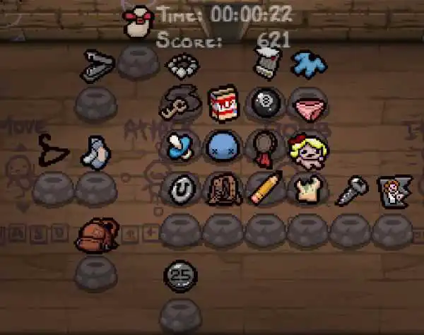可能的掉落物有:2个金箱子道具或1~19个随机硬币,1~9枚随机炸弹,0~6个随机钥匙,0~9个随机心,0~2张随机卡牌或符文,0~2个饰品。