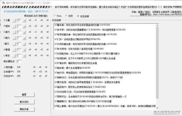 具体:力量15、感知3、耐力9、魅力7、智力5、敏捷11、幸运6。