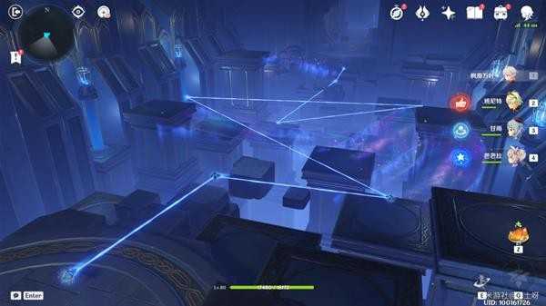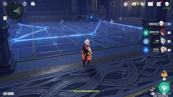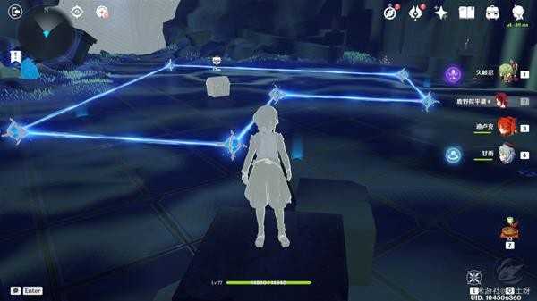 来到星象仪下方,通过传送门,进入莫娜的房间,触碰奇异的摆件,来到神秘空间,踩四个星盘,这里拼的是莫娜的星座,随便踩踩就能过了,记住要等星星移动停止,出现连线再去踩下一个,如果踩上去不动,那就跳一下或者换一个踩