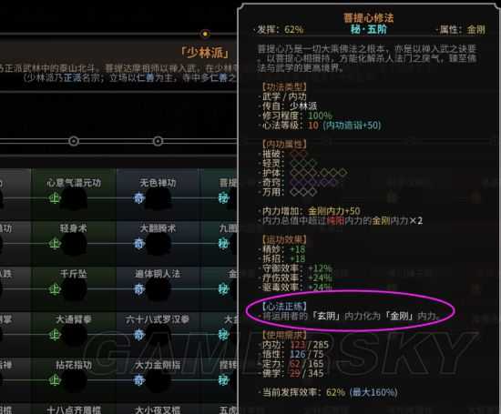 如图可以看到,心法,功法这些都是含有属性的,如果想要发挥出最大伤害,那么就提升这个属性,这样才能打出这个属性最大打输出量。