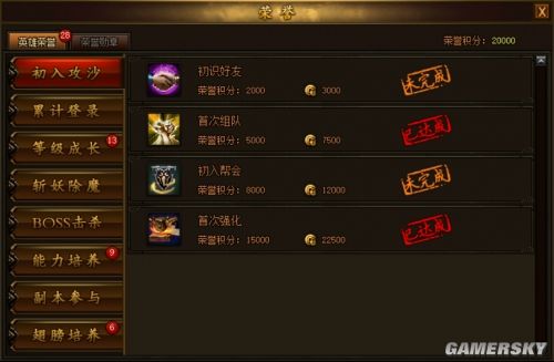 荣誉,是玩家在游戏世界中成长的点滴记录。