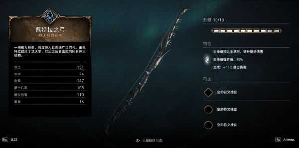 值得注意的是:沃尔德尔之噬只需要击杀挪威和英格兰一共九只传奇动物后到猎人小屋与华莱士对话即可获得。而佩特拉之弓则需要额外击杀文兰和约顿海姆的两只传说动物凶恶驼鹿和斯坦比约恩。