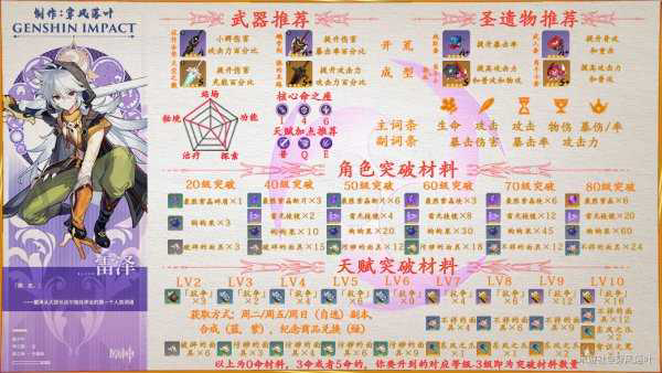 《原神》中雷泽是一位雷属性的近战角色,很多小伙伴由于不太了解他从而放弃了使用,那么现在为大家带来“穿风落叶”分享的《原神》雷泽武器、圣遗物及突破材料推荐,希望对大家有所帮助。