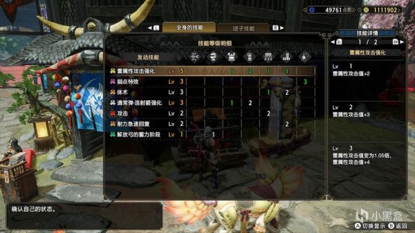 言归正传,下面给出配装。本作耐力最多可以体术5+强走药,体术4+体术猫饭+强走药也可以叠满。耐力使用情况因人而异,以下配装绑定体术3耐回2,需要体术4的朋友可以自行降级。五属性武器全部使用百龙弓,百龙强化见高配第一张图。