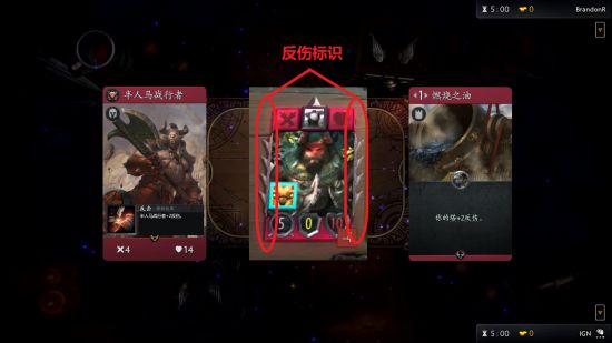 反伤,对攻击该单位的生物造成反击伤害。反伤在战斗中生效(不仅仅是战斗阶段,如在军团专属卡作用后的战斗中仍然会触发反伤,这点与其他类似属性攻城等不同),对攻击他的单位造成额外的伤害。