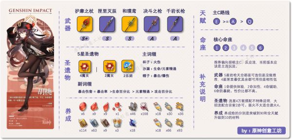 《原神》1.3版本新角色胡桃已经上线,独特的机制以及玩法让她跟原有的全部角色都没有共同点,那么她该如何培养呢,下面请看“Penta丶梦”分享的《原神》胡桃一图流简明培养方案,希望能够帮助大家。