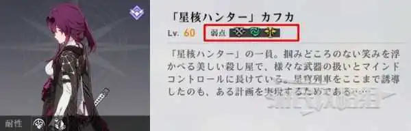 敌人具有各自的弱点属性,使用弱点对应的属性攻击该敌人,即可削减该敌人HP上方的白色韧性条。基本上是用弱点削韧再削血的流程,因此在进入战斗前可以先尽量在队伍中加入至少一名对应弱点属性的角色。