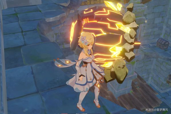 20秒内开启宝箱,其实就是爬个山,需要一定体力,体力不够完不成,体力不够也可以让岩主在这个机关提前放个石头,或者安柏放个娃娃再开启挑战。