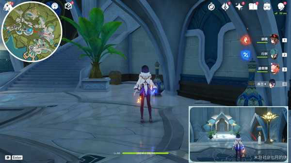 在须弥传送点,往上走,进入教令院,经过第一个房间的喷泉,即可看到一座桥,从npc「琪娜特」身后跳下去,就在npc脚下的楼梯盆栽旁边,这也是一个不知名npc的私房钱~