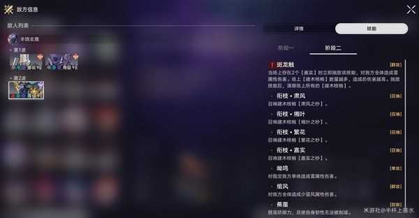 阶段二和阶段一相比多了主要输出技能【斑龙触】,还有两个新的召唤物【繁花之杪】【嘉实之杪】,同时多了一个【蕉覆】免疫削韧。