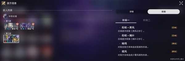 阶段一比较简单就是召唤两种枝梢分别是【肃风之杪】和【缃叶之杪】,具体属性如下: