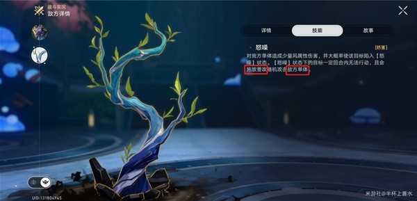 【肃风之杪】主要是控制技能,【狂躁】让我方不能释放战技,只能自动攻击敌方