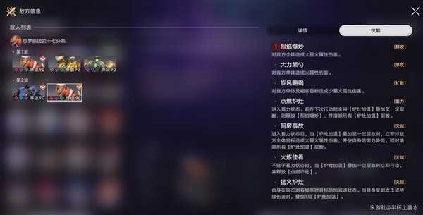 也是需要关注右侧层数,尽量在叠满6层之前将其弱破,需要注意的是,如果在恐龙厨师行动之前没办法击破的话,就先攻击其他敌人,不然满层之后的【烈焰爆炒】伤害还是非常高的。