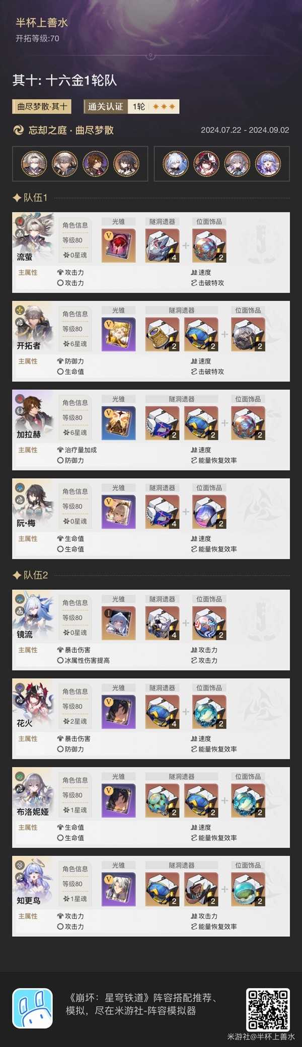 《崩坏星穹铁道》忘却之庭曲尽梦散其十并不算难,那么忘却之庭曲尽梦散第10层要怎么满星通关呢?下面请看由“半杯上善水”为大家带来的《崩坏星穹铁道》2.3曲尽梦散10层满星攻略,希望可以帮助到大家。