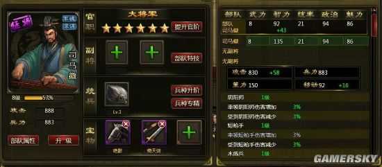 2、武将的武力决定部队的攻击力、智力决定了妖术师的伤害和命中率、统御决定了兵力和隐藏的防御力。如果基础属性太低就决定了部分武将无法当做主将使用,比如黄月英尽管有不错的技能,但是五十多的武力当主将的话基本就是坑,同等兵种阶级月英率领的部队攻击力比紫色的大部分武将都低,同理许诸不适合当主将也是应为统御太坑。