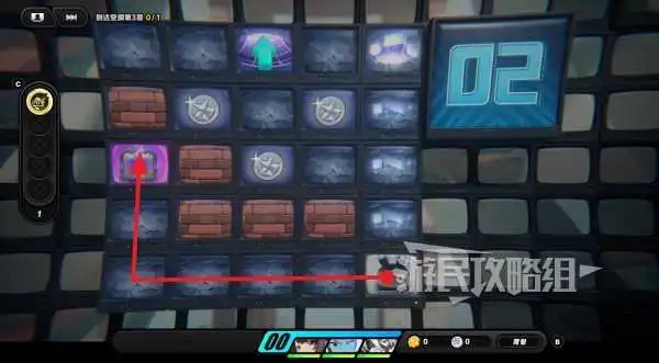 进入传送门到达第二层后,往左走到头,然后往上走,拾取紫色物资。